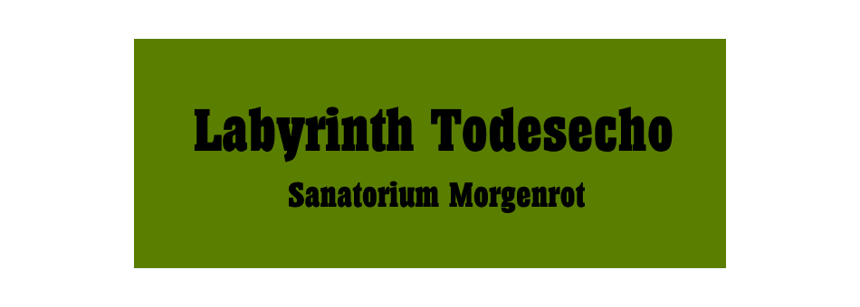 Unser Sanatorium ist ein in Planung befindliches Labyrinth in der Nähe Münchens. Im Gegensatz zu vielen anderen "Labyrinthen" sind wir tatsächlich eines, denn auf über 6.000 m² befinden sich dutzende Räume im Stil einer alten Lungenheilstätte die durch lange Gänge und hunderte Türen miteinander verbunden sind. In kleinen Gruppen bewegt man sich durch ein riesiges Indoor-Labyrinth und erlebt viele seltsame Dinge.